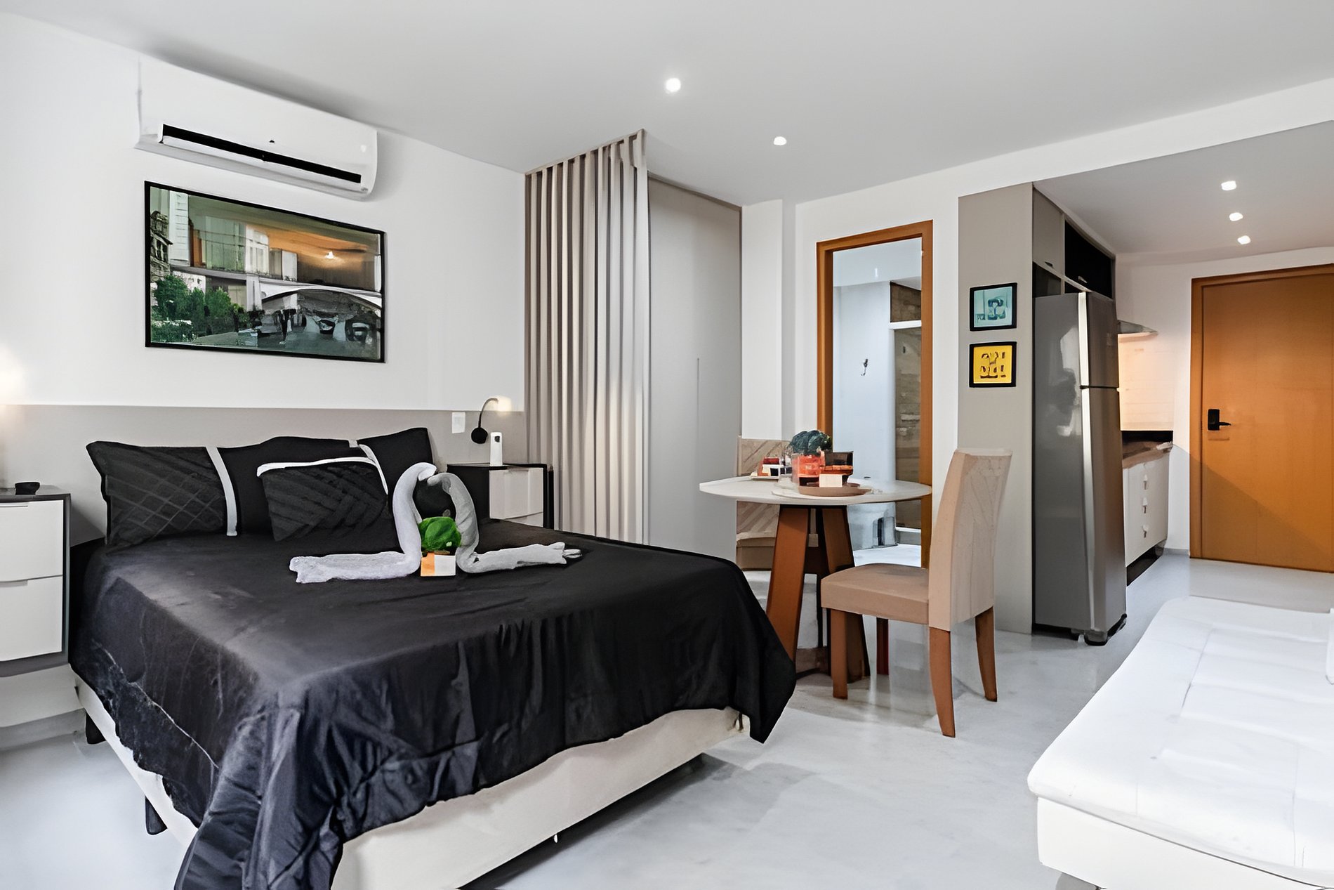 Bem-vindo ao seu refúgio urbano no coração do Rio de Janeiro! Este studio moderno e aconchegante foi cuidadosamente preparado para oferecer uma experiência única e confortável. Veja o que espera por você: Espaço Aconchegante: Um ambiente aberto e bem iluminado, perfeito para relaxar após um dia explorando a cidade. Wi-Fi Rápido: Conexão de alta velocidade para trabalhar, estudar ou se divertir. Cozinha Completa: Equipada com todos os utensílios necessários para preparar suas refeições favoritas. Enxoval Incluso: Roupa de cama e toalhas de alta qualidade para seu conforto. Área de Estar: Um espaço confortável com sofá e TV para seus momentos de lazer. Área de Dormir: Cama espaçosa e aconchegante para garantir noites tranquilas de sono. Banheiro Moderno: Com chuveiro quente e amenities de cortesia. Climatização Ideal: Ar condicionado para garantir seu conforto em qualquer estação do ano.